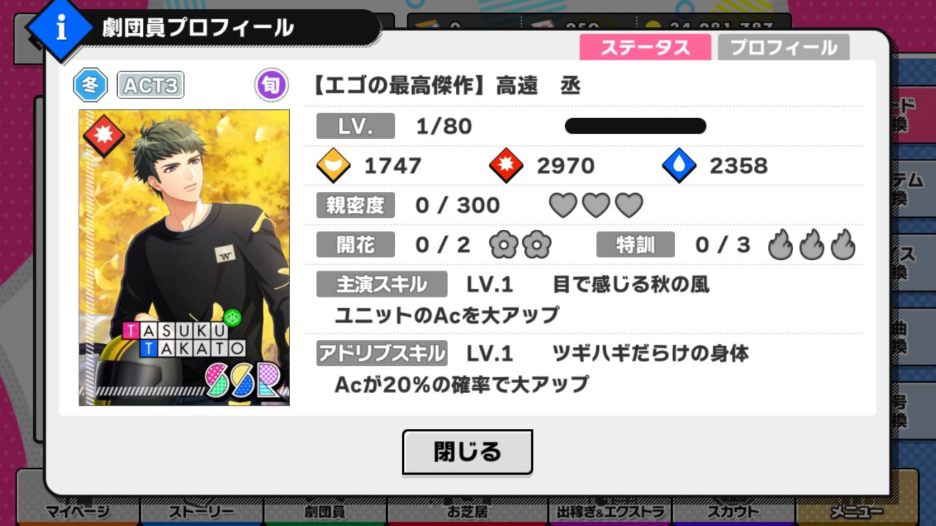 交換所で交換できる劇団員(旬スカウトレターで交換)