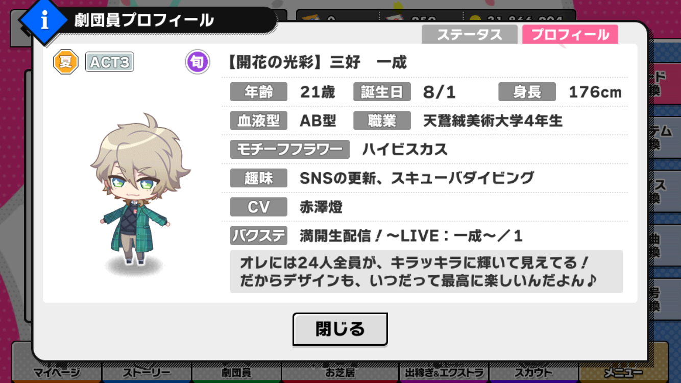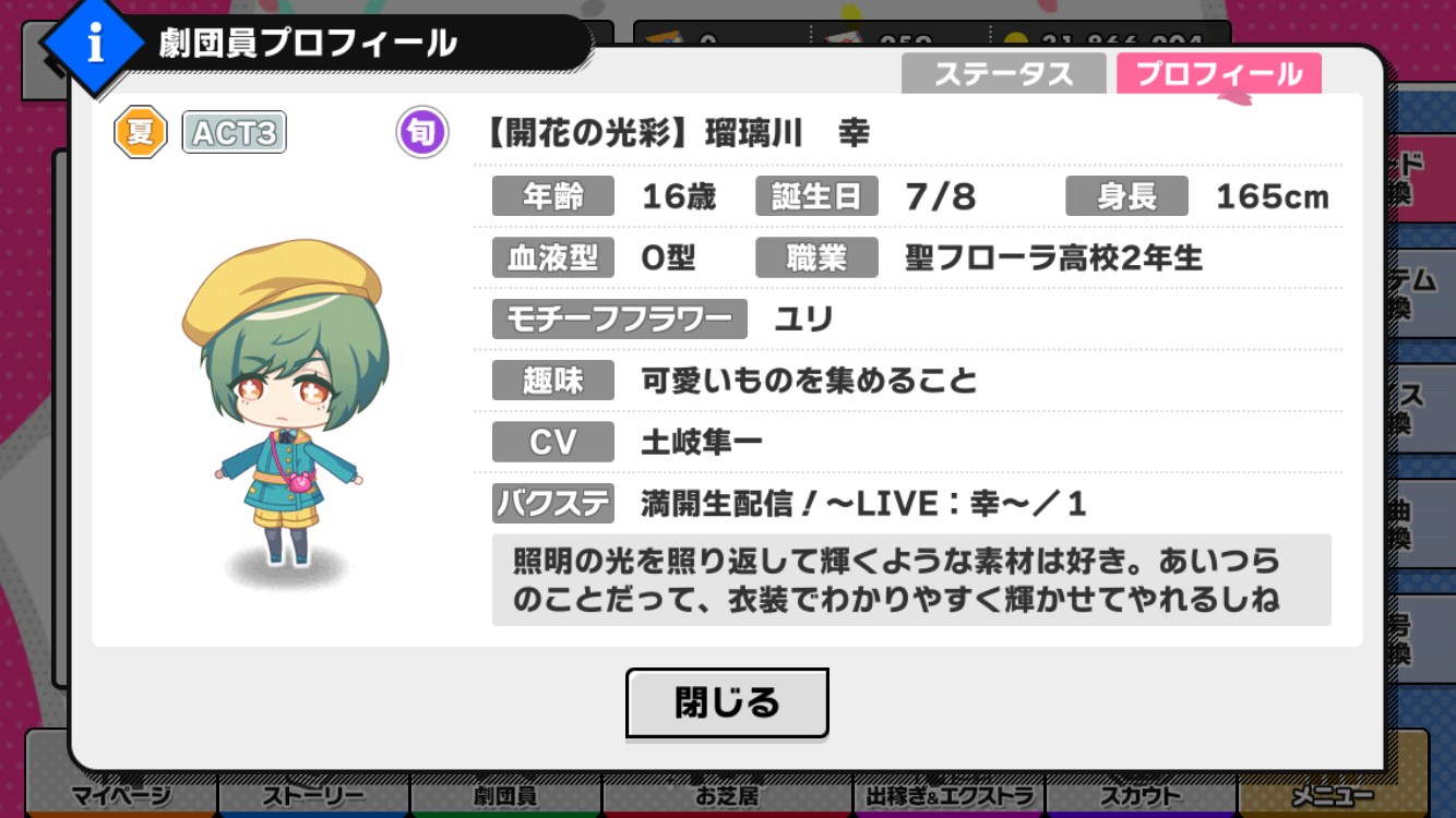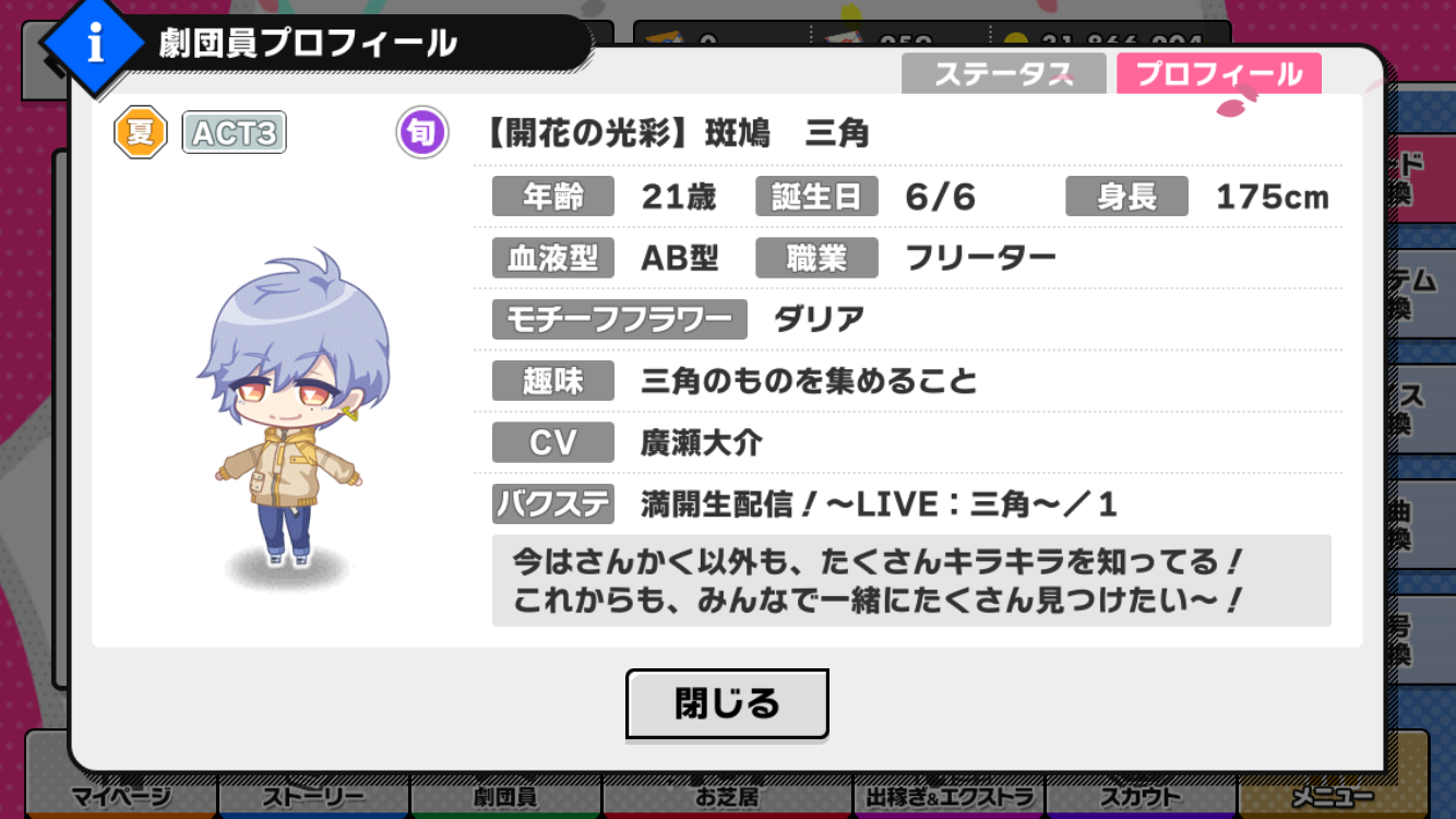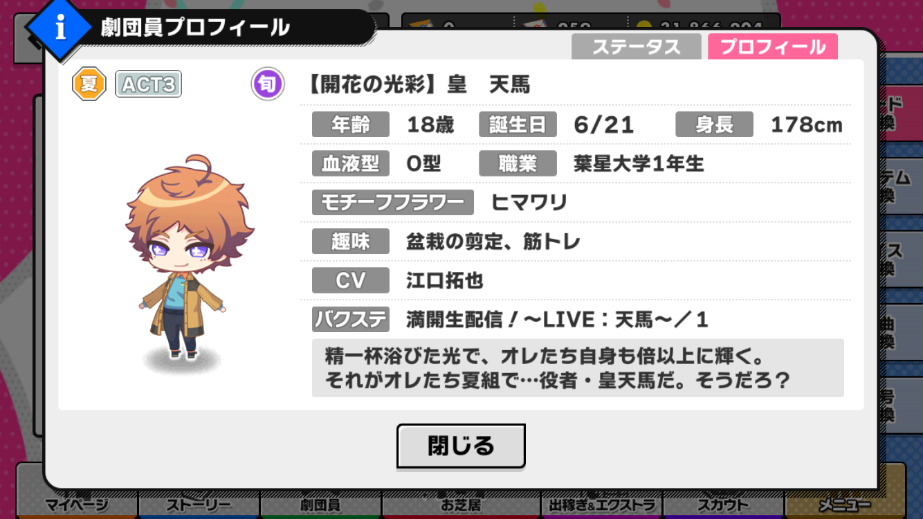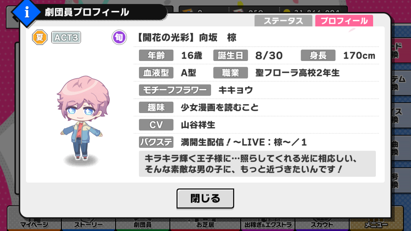 夏組のSR【開花の予感】は排出されません。春秋冬のSR【開花の予感】は排出されます。