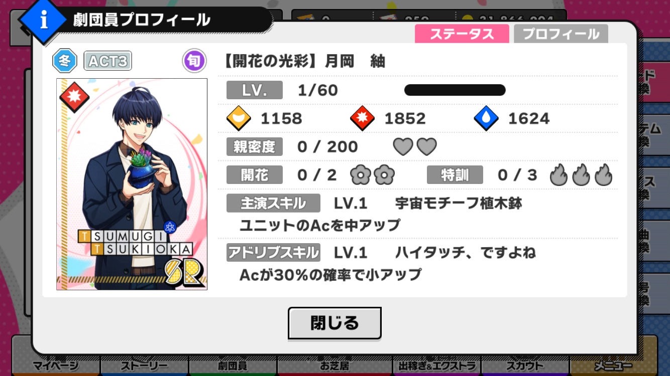 SR 【開花の光彩】月岡紬 Ac主演スキル「宇宙モチーフ植木鉢」