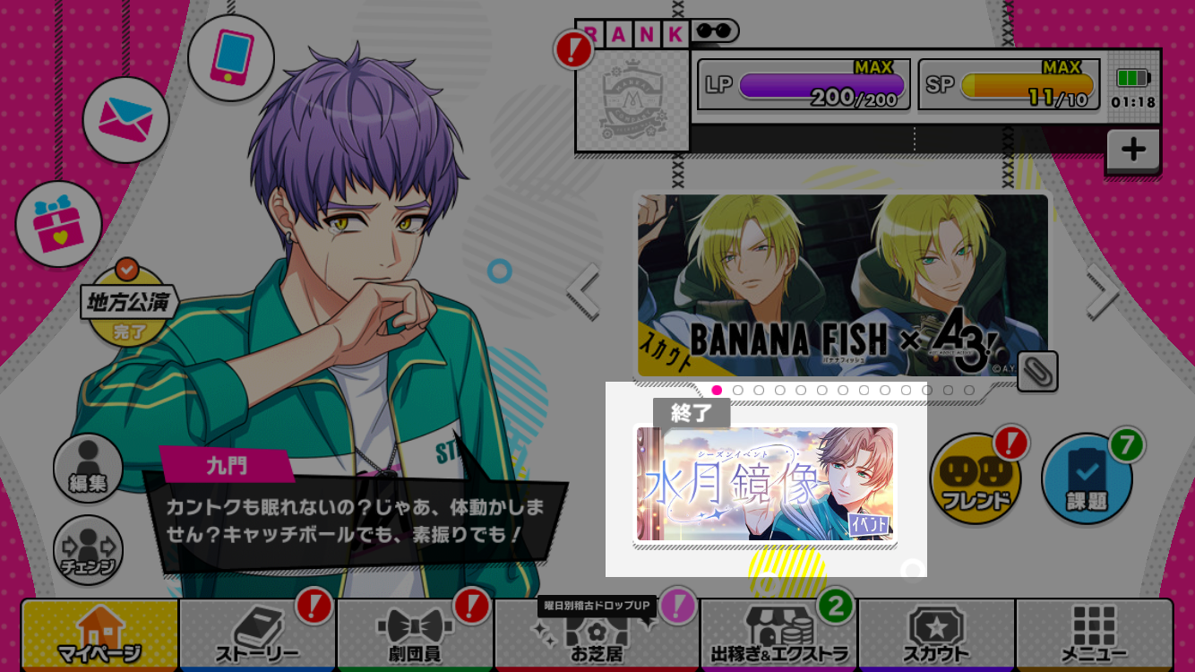この位置にBANANA FISHコラボイベントが始まりましたら、イベントバナーが表示されるはずです。